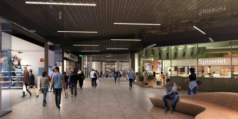 Eksisterende del av kjøpesenteret ble pusset opp og bygget om i alle 3 etasjer.